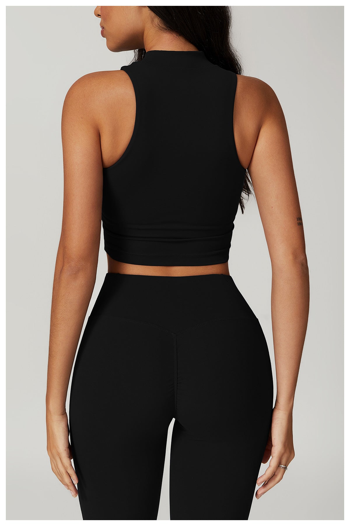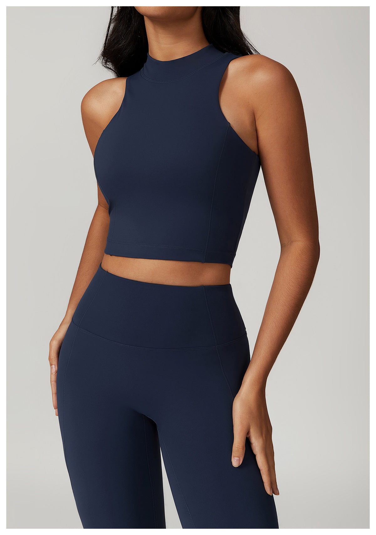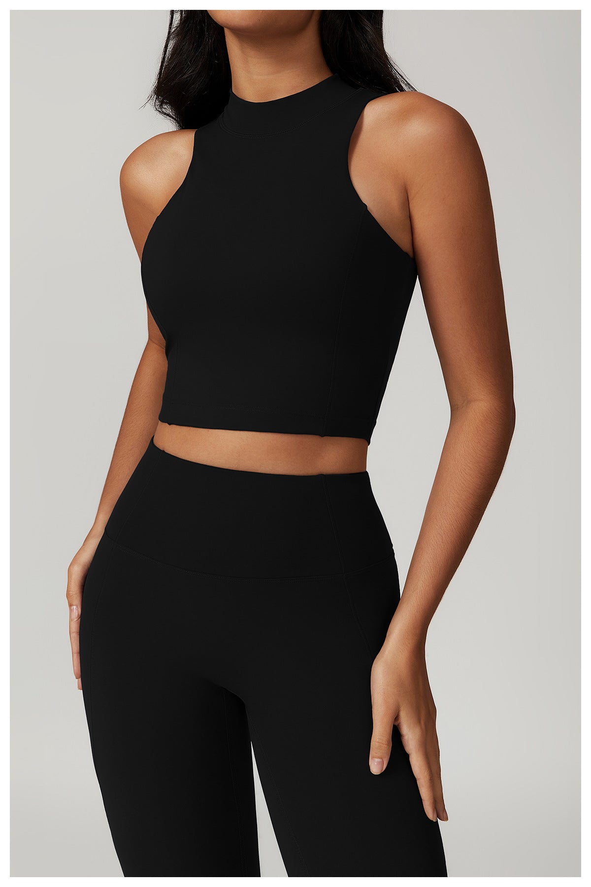 Ce haut de sport classique à col rond allie sensualité et modernité. Conçu avec une silhouette ajustée qui galbe et maintient la silhouette, il épouse parfaitement vos mouvements. Ses coussinets amovibles en font un modèle idéal pour l'entraînement comme pour une tenue décontractée : enfilez-le et partez !